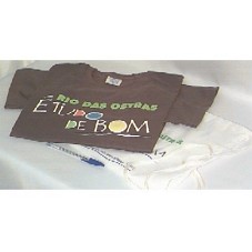 CAMISETA (TAM G) EM MALHA VERDE MUSGO, COM OS DIZERES 'RIO DAS OSTRAS É TUDO DE BOM', NA FRENTE, E, NAS COSTAS 'PREFEITURA DE RIO DAS OSTRAS'. ACONDICIONADA EM SACOLA BRANCA DE TNT, COM A INSCRIÇÃO: 'RIO DAS OSTRAS É TUDO DE BOM PREFEITURA DE RIO DAS OSTRAS'