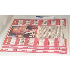 TRÊS CALENDÁRIOS DE PAREDE (30X42,5 CM), COM FUNDO VERMELHO, OS MESES DISPOSTOS NA VERTICAL DE CADA LADO, COM UMA FOTO DO PRESIDENTE LUIZ INÁCIO LULA DA SILVA NO CENTRO SUPERIOR, INSCRITO 'LULA PRESIDENTE', E UMA CARTA DO REMETENTE NO CENTRO INFERIOR.