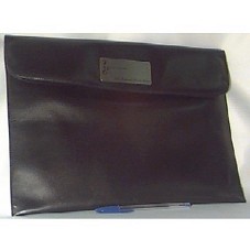 PASTA EXECUTIVA (36,5 X 27 CM) EM COURO PRETO. FECHAMENTO EM ENVELOPE, COM BOTÃO DE ÍMÃ. POSSUI UM BOLSO EXTERNO ABERTO, UM COMPARTIMENTO INTERNO E UM BOLSO EXTERNO DE ZÍPER. NA FRENTE, UM PLACA (8 X 4 CM) EM METAL PRATEADO COM A INSCRIÇÃO EM PRETO '4ª BIENAL DO MERCOSUL LUIZ INÁCIO LULA DA SILVA'. PASTA DO TIPO TIRACOLO, SEM ALÇA. ACABAMENTO INTERNO EM TECIDO NA COR BEGE. ACOMPANHA FOLDER DA BIENAL E CINCO VOLUMES DA REVISTA 'BIENAL MERCOSUL'.