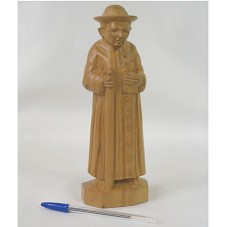 ESCULTURA (25 CM) CONFECCIONADA EM PEÇA ÚNICA DE MADEIRA, REPRESENTANDO O PADRE CÍCERO, COM BÍBLIA E CAJADO NAS MÃOS. NA PARTE INFERIOR DA BASE, A INSCRIÇÃO 'GERALDO 2008'.