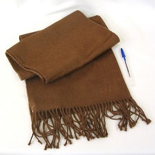 CACHECOL (172X28 CM) NA COR MARROM, COM FRANJAS NAS DUAS EXTREMIDADES. EM UMA DELAS, BORDADO EM MESMO TOM DE COR, AS INICIAIS 'L I L S'. POSSUI ETIQUETA COM NOME DO FABRICANTE. ACONDICIONADO EM CAIXA PRETA COM NOME DA MARCA NA TAMPA.