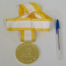 MEDALHA (70 MM) EM METAL DOURADO, PRESA À FITA NA COR BRANCA COM LATERAIS EM LISTRAS AMARELAS. NO ANVERSO, A GRAVAÇÃO 'JAPAN 2007 INTERNATIONAL SKILLS FESTIVAL FOR ALL' E 'SKILLS 2007 / SHIZUOKA JAPAN' COM LOGOMARCA. NO REVERSO, IMAGEM DO MONTE FUGI, COM A INSCRIÇÃO '39TH WORLDSKILLS COMPETITION / WORLDSKILLS INTERNATIONAL'.