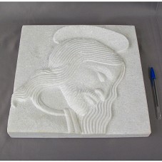 ESCULTURA BIDIMENSIONAL (4X32X32 CM) ESCULPIDA EM PEÇA BRANCA DE MÁRMORE, RETRATANDO A IMAGEM DO ROSTO DE CRISTO. NA PARTE POSTERIOR, A INSCRIÇÃO 'MAIS UMA VEZ JUNTOS: LULA E CACHOEIRO / LEVE A ARTE DE NOSSOS FILHOS, ESCULPIDA NA RIQUEZA DESTA TERRA, COMO FORMA DE GRATIDÃO. PARTIDO DOS TRABALHADORES / CACH. DE ITAPEMIRIM 19/02/08'.