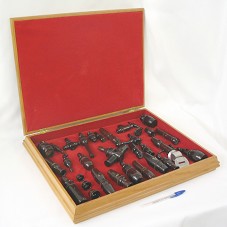 ESTOJO (57X51X40 CM) EM MADEIRA CONTENDO TRINTA E DUAS PEÇAS NUMERADAS, EM MADEIRA, E UMA EM METAL. PEÇAS FAZEM PARTE DA 'COLEÇÃO DE PIOS DE AVES MAURÍLIO COELHO', ASSOBIOS QUE IMITAM/REPRODUZEM PIOS DE AVES. ACOMPANHA ENCADERNAÇÃO COM DESCRIÇÃO E EXPLICAÇÃO DE CADA PEÇA; E UM BILHETE EM NOME DO AGENTE.