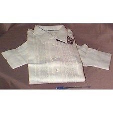 CAMISA SOCIAL (TAM. 46) EM ALGODÃO BRANCO, DE MANGA COMPRIDA, COM DUAS FAIXAS BORDADAS MANUALMENTE NA FRENTE. ETIQUETA INTERNA NA COR VIOLETA, COM INSCRIÇÃO 'BRITISH SHOPPING SINCE 1989'. ACOMPANHA 7 BOTÕES 'NEGROS NACARADOS' PARA SEREM USADOS COM SMOKING E, INFORMATIVO SOBRE A CONFECÇÃO DA MESMA. ACONDICIONADA EM SACO PLÁSTICO COM FECHAMENTO COM BOTÃO DE PRESSÃO.