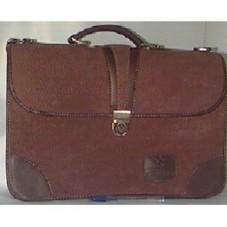 PASTA EXECUTIVA (43x30x7 CM) EM COURO MARROM ESCURO COM MARROM CLARO. POSSUI DOIS COMPARTIMENTOS INTERNOS, UM BOLSO INTERNO DE ZÍPER, ESPAÇO PARA 3 CARTÕES E TRÊS CANETAS. POSSUI UMA PLACA (12X 4 CM) INTERNA EM METAL DOURADO COM OS DIZERES 'XXIV REUNION DEL CONSEJO MERCADO COMUN Y CUMBRE DE JEFES DE ESTADO DE LOS PAISES MIEMBROS DEL MERCOSUR BOLIVIA Y CHILE ASUNCION 17-18 DE JUNIO 2003'. POSSUI ALÇA EM COURO E ACOMPANHA ALÇA A TIRACOLO DENTRO DA PASTA. DETALHES DO ACABAMENTO EM METAL DOURADO. ACABAMENTO INTERNO EM COURO E TECIDO. NA PARTE FRONTAL, UM PEDAÇO DE COURO COM QUATRO ESTRELAS GRAVADAS MAIS A INSCRIÇÃO 'MERCOSUR'.
