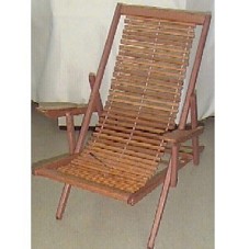 ESPREGUIÇADEIRA EM MADEIRA (130X67 CM) COM ALTURA REGULÁVEL, E APOIO PARA BRAÇO. ASSENTO E ENCOSTO UNIFICADO, FEITO COM RIPAS DE MADEIRA, UNIDAS POR CORDÃO BRANCO REVESTIDO DE PEDAÇOS DE MANGUEIRA DE PLÁSTICO TRANSPARENTE, CORTADOS NA ALTURA DO ESPAÇAMENTO ENTRE ELAS.