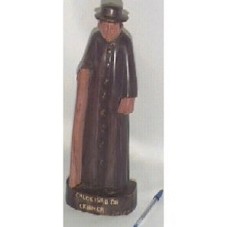 ESTÁTUA EM MADEIRA (38X27 CM) DO PADRE CÍCERO, EM PÉ, SEGURANDO O CAJADO EM UMA DAS MÃOS, E UM LIVRO, NA OUTRA.VESTIDO COM BATA E CHAPÉU. NA BASE, A INSCRIÇÃO 'CALDEIRÃO DA CRIANCA JUAZEIRO - CE'. NO FUNDO DA BASE HÁ UMA INSCRIÇÃO, QUE PARECE SER A ASSINATURA DO AUTOR, MAS NÃO FOI POSSÍVEL IDENTIFICAR. ACONDICIONADA EM SACO FURADO, IMITANDO TELA, NA COR CINZA.