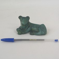 ESCULTURA (5X8X5,5 CM) EM BRONZE, FIGURA DE UM CÃO SENTADO, COM AS PATAS DIANTEIRAS CRUZADAS. NA BASE, EM DOURADO, ASSINATURA DO ARTISTA 'SEBASTIAN SCHILDT'.