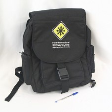 MOCHILA PARA NOTEBOOK (41X30X12 CM) CONFECCIONADA EM LONA PRETA, COM REFORÇO EM TODAS AS PARTES. POSSUI VÁRIAS DIVISÓRIAS. NA FRENTE, BORDADO CONTENDO A INSCRIÇÃO 'FÓRUM INTERNACIONAL DE SOFTWARE LIVRE / WWW..FISL.SOFTWARELIVRE.ORG', E LOGOMARCA. NO INTERIOR, BÓTON EM METAL, COM LOGOMARCA DO EVENTO.