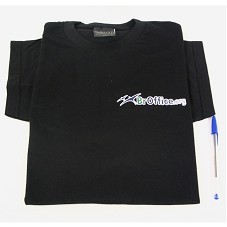 CAMISETA(TAM G) EM MALHA PRETA, DE MANGA CURTA. NA FRENTE, ESTAMPA EM AZUL, VERDE E BRANCO, CONTENDO A INSCRIÇÃO 'WWW.BROFFICE.ORG'. ATRÁS, EM TAMANHO MAIOR, 'BROFFICE. ORG'.