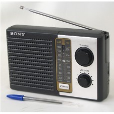 RÁDIO AM/FM, MODELO 'ICF-F10', DA SONY. POSSUI ANTENA, BOTÕES SELETIVOS E DE VOLUME. ACOMPANHA MANUAL DE INSTRUÇÕES E DUAS PILHAS TAMANHO 'D'. ACONDICIONADO EM EMBALAGEM PRÓPRIA. NA FRENTE, DA CAIXA, PAPEL COLADO COM A INSCRIÇÃO 'RÁDIO JORNAL AM 780 / A 1ª RÁDIO DA AMÉRICA LATINA NA WEB / DE GERALDO FREIRE PARA PRES. LULA'.