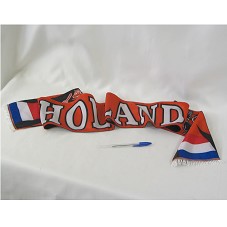 FAIXA (144X14,5 CM) COM UMA DAS FACES LARANJA, E OUTRA PRETA. POSSUI A INSCRIÇÃO 'HOLLAND' E SÍMBOLO DE UM LEÃO EMPUNHANDO UMA ESPADA E FLECHAS, NAS DUAS FACES.