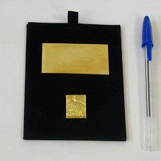 BÓTON (2X1,8 CM) EM METAL DOURADO, TENDO NO ANVERSO A IMAGEM DE MONTANHAS E A INSCRIÇÃO 'V CUMBRE ALC-UE / PERÚ 2008'. ACONDICIONADO EM CAIXA FORRADA DE VELUDO PRETO, ONDE HÁ PLACA METÁLICA COM A GRAVAÇÃO 'EXCELENTÍSIMO SEÑOR LUIZ INÁCIO LULA DA SILVA / PRESIDENTE DE LA REPÚBLICA FEDERATIVA DEL BRASIL / V CUMBRE ALC-UE / PERÚ, MAYO 2008'.