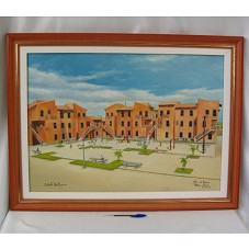 QUADRO (62X82,5 CM) COM PINTURA (49X68,5 CM) SOBRE TELA RETRATANDO UMA VILA RESIDENCIAL, COM PRÉDIOS DISPOSTOS AO REDOR DE UMA PRAÇA CENTRAL. NO CANTO INFERIOR ESQUERDO, ASSINATURA DA ARTISTA 'CELESTE HEITMANN'; NO DIREITO, 'VILA DA BARCA / BELÉM / PARÁ / DEZ/2007'. POSSUI MOLDURA EM MADEIRA, COM FRISO DOURADO E PASSE-PARTOUT BRANCO.