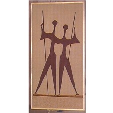 QUADRO (46X92 CM) INTITULADO 'CANDANGOS', AUTOR ALCIVANDO. QUADRO USANDO A TÉCNICA REMADEIRA, QUE TRABALHA RESÍDUOS DE PÓ DE DIVERSAS ESPÉCIES DE ÁRVORES BRASILEIRAS. TRAZ A IMAGEM DOS DOIS CANDANGOS EM MARROM ESCURO, EM FUNDO BEGE. EMOLDURADO EM MADEIRA CLARA.