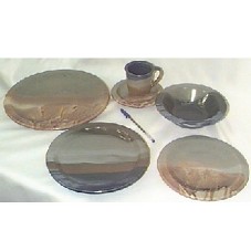 CAIXA EM MADEIRA (40X63X30,5 CM), TIPO BAÚ, CONTENDO DOZE PRATOS RASOS, DOZE PRATOS FUNDOS, DOZE PRATOS DE SOBREMESA, DOZE PRATOS MÉDIOS, DOZE XÍCARAS E DOZE PIRES EM CERÂMICA, TODOS PINTADOS EM TONS DE AZUL, VERDE, MARROM, FIGURANDO PAISAGENS DE CAMPOS. ACOMPANHA CARTÃO DO REMETENTE COM OS DIZERES 'OBSEQUIO DEL PUEBLO Y DEL GOBIERNO DE ANTIOQUIA - COLOMBIA AL EXCELENTÍSSIMO SEÑOR PRESIDENTE DE LA HERMANA REPÚBLICA FEDERATIVA DEL BRASIL LUIZ INÁCIO LULA DA SILVA / EUGENIO PRIETO SOTO GOBERNADOR DE ANTIOQUIA'. NA PARTE DE FORA DO ENVELOPE 'EXCELENTÍSSIMO SEÑOR LUIZ INÁCIO LULA DA SILVA PRESIDENTE DE LA REPÚBLICA FEDERATIVA DEL BRASIL'. A CAIXA DE MADEIRA TRAZ ALÇAS E FECHO (PARA CADEADO) EM FERRO PINTADO DE PRETO, EM ESTILO ANTIGO. NA FRENTE, UMA PLACA (10X5 CM) COM A INSCRIÇÃO ' IDEA / INSTITUTO PARA EL DESARROLLO DE ANTIOQUIA / GOBERNACION DE ANTIOQUIA / REPUBLICA DE COLOMBIA / EL SER HUMANO, NUESTRA MEJOR IDEA'.