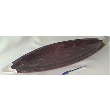 TRAVESSA (65X19 CM) EM FORMA DE PALMA TROPICAL, EM MADEIRA (MACANA) POLIDA, TENDO A PARTE DE CIMA EM QUADRICULADO DE MADEIRA, EM TOM DE MARROM ESCURO, IMITANDO FIBRAS. AS PONTEIRAS TÊM ACABAMENTO EM METAL PRATEADO. ACOMPANHA DOIS CARTÕES, UM DO REMETENTE 'ALVARO URIBE VÉLEZ / PRESIDENTE DE LA REPÚBLICA DE COLOMBIA'; E O OUTRO, COM DESCRIÇÃO DO MATERIAL UTILIZADO 'MACANA / ES UNA PALMA TROPICAL QUE SE DA PRINCIPALMENTE EN ZONAS DEL CAQUETÁ Y TOLIMA Y SE UTILIZAN LOS DESECHOS DE LO QUE SOBRA DEL VINO DE PALMA.'. ACONDICIONADA EM SACO ACOLCHOADO DE TECIDO PRETO, COM FORRO EM AZUL.