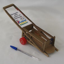 ARTESANATO (7,5X31X10 CM). MINIATURA DE CARRO DE CATADOR DE MATERIAL RECICLÁVEL CONFECCIONADO EM PAPELÃO, COM RODAS DE TAMPA DE GARRAFA PET. POSSUI PAPEL COM A INSCRIÇÃO 'OBRIGADO PELO APOIO NA REALIZAÇÃO DO 7º FESTIVAL LIXO E CIDADANIA'. ACONDICIONADO EM EMBALAGEM DE PAPELÃO, COM ETIQUETA DO FABRICANTE NAS LATERAIS.