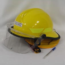 CAPACETE DE PROTEÇÃO, NA COR AMARELA, COM VISOR ACRÍLICO. POSSUI ABA POSTERIOR MAIS ALONGADA; PARTE INTERNA REVESTIDA COM FORRO DE ALGODÃO; E CINTA DE AJUSTE. NA FRENTE, ETIQUETA COM A INSCRIÇÃO 'LUIZ INÁCIO LULA DA SILVA / PRESIDENTE DA REPÚBLICA / CHEGA DE DESMATAMENTO NA AMAZÕNIA'.