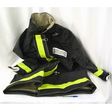 CAPA(TAM P), TIPO SOBRETUDO, EM TECIDO PRETO, FORRADA E ACOLCHOADA INTERNAMENTE. POSSUI BOTÕES METÁLICOS TIPO GANCHOS E FAIXAS AMARELAS DE SINALIZAÇÃO. NA FRENTE, ETIQUETA BORDADA COM A INSCRIÇÃO 'LUIZ INÁCIO LULA DA SILVA / PRESIDENTE DA REPÚBLICA / CHEGA DE DESMATAMENTO NA AMAZÕNIA'. ATRÁS, 'CHEGA DE DESMATAMENTO NA AMAZÔNIA / GREENPEACE'.