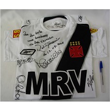 CAMISA DE FUTEBOL (TAM G) DO TIME 'CLUBE DE REGATAS VASCO DA GAMA', NA COR BRANCA. POSSUI BRASÃO DO TIME NA PARTE FRONTAL E A INSCRIÇÃO 'MRV'; ALÉM DE DEDICATÓRIA 'PARA PRES. LULA UMA LEMBRANÇA DO PRES. VASCAINO ROBERTO DINAMITE / RIO 13.09.2008', ASSINATURA DO PRESIDENTE DO TIME E DE OUTRAS PESSOAS. NA PARTE POSTERIOR, O NÚMERO '10' E O NOME 'LULA'.