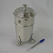 BOMBONIERE (20X11 CM), MODELO P36A, CONFECCIONADA EM ESTANHO, COM TRÊS BOTÔES NA BASE. ACOMPANHA TAMPA. POSSUI, EM UM DOS LADOS, BRASÃO COM AS INICIAIS GRAVADAS 'PII'. DO OUTRO LADO, 'JS / X / MG'. ACOMPANHA MINI FOLDER COM INFORMAÇÕES SOBRE A PEÇA. ACONDICIONADA EM SACO DE ALGODÃO BRANCO, COM LOGOMARCA DO FABRICANTE. TAMPA ACONDICIONADA EM SACO SEPARADO.