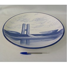 PRATO DECORATIVO (38 CM) CONFECCIONADO EM CERÃMICA BRANCA, COM PINTURA EM TONS DE AZUL, RETRATANDO O CONGRESSO NACIONAL, EM BRASÍLIA. NA PARTE POSTERIOR DO MESMO, A INSCRIÇÃO 'LEMBRANÇA CERÂMICA LUIZ SALVADOR'.