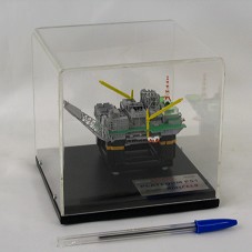 MAQUETE DA PLATAFORMA P-51 (8X8X12 CM - MEDIDAS APROXIMADAS), EM ESCALA 1:1500, NUMERADA EM 42/50. FIXADA EM BASE PRETA (13,5X13,5 CM), ONDE HÁ PLACA METÁLICA COM A INSCRIÇÃO 'KEPPEL FELS BRASIL / TECHNIP / PLATAFORM P51 / BUILDER: BRASFELS'. POSSUI REDOMA DE ACRÍLICO. NO FUNDO DA BASE, ETIQUETA DO FABRICANTE, COM INFORMAÇÕES SOBRE A PEÇA (NÚMERO DE SÉRIE P51-1500-50/42).
