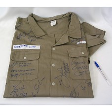 CAMISA / UNIFORME (TAM 8) EM BRIM CINZA, DE MANGAS COMPRIDAS, E BOLSO FRONTAL. NAS MANGAS, BANDEIRA DO BRASIL E ESTAMPA COM A INSCRIÇÃO 'SEGURANÇA MEIO AMBIENTE / SAÚDE'. ATRÁS E NA FRENTE, 'KÉPPEL'. POSSUI ASSINATURA DE DIVERSAS PESSOAS, TENDO NA PARTE POSTERIOR A INSCRIÇÃO MANUSCRITA 'PRESIDENTE LULA: CONTAMOS CONTIGO PARA NOVAS OBRAS / FICAMOS GRATOS'.
