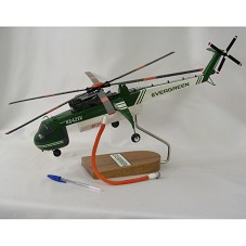 MAQUETE DE UM HELICÓPTERO (13X50X16 CM) PINTADO NAS CORES BRANCO E VERDE. POSSUI UM CORDÃO LARANJA FIXADO NA LATERAL DIREITA. NAS LATERAIS, A INSCRIÇÃO 'N642EV / EVERGREEN'. ACOMPANHA BASE/SUPORTE DE MADEIRA, COM HASTE METÁLICA, ONDE É ENCAIXADO. NA BASE, A INSCRIÇÃO 'EVERGREEN'. NO FUNDO, ETIQUETA DO FABRICANTE.
