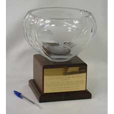 PRÊMIO 'IPS INTERNATIONAL ACHIEVEMENT AWARD 2008'. ESCULTURA EM CRISTAL (14,5X20X20 CM) DE FORMATO ESFÉRICO, COM PARTE SUPERIOR RECORTADA, COM DESENHO DO GLOBO MUNDI JATEADO NELA. FIXADA EM BASE DE MADEIRA (10X15X15 CM). NA PARTE FRONTAL DESTA, PLACA METÁLICA COM A GRAVAÇÃO 'INTER PRESS SERVICE / INTERNATIONAL ACHIEVEMENT AWARD 2008 / TO PRESIDENT LUIZ INÁCIO LULA DA SILVA OF BRAZIL / FOR LIFTING MILLIONS OUT OF POVERTY AT HOME AND FOR CHAMPIONING THE CAUSE OF FAIR TRADE, SOCIAL JUSTICE AND ECONOMIC EQUITY FOR THE DEVELOPING WORLD. UNITED NATIONS, SEPTEMBER 22, 2008 / MARIO LUBETKIN, IPS DIRECTOR GENERAL'.