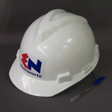 CAPACETE DE PROTEÇÃO, UTILIZADO EM CONSTRUÇÃO CIVIL, NA COR BRANCA, COM AJUSTES INTERNOS. NA FRENTE, ETIQUETA COM A LOGOMARCA E NOME DA 'ELETRONORTE'.
