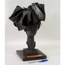 I PREMIO INTERNACIONAL DON QUIJOTE DE LA MANCHA. ESCULTURA EM BRONZE (29,5 CM), FIGURA ESTILIZADA DE UM ROSTO, COM ADORNO NA CABEÇA. FIXADA EM BASE METÁLICA (2X14X15 CM), ONDE HÁ PLACA COM A GRAVAÇÃO 'I PREMIO INTERNACIONAL DON QUIJOTE DE LA MANCHA / LUIZ INÁCIO LULA DA SILVA / JUNTA DE CASTILLA LA MANCHA / FUNDACIÓN SANTILLANA'.