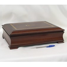 ESTOJO PARA ESCRITÓRIO (9,5X34,5X26 CM), CONFECCIONADO EM MADEIRA. POSSUI BANDEJA INTERNA REMOVÍVEL E PORTA-CANETA HORIZONTAL. ACOMPANHA CARTÃO DO AGENTE. TAMPA COM MOLDURA TRABALHADA EM MARCHETARIA, E A INSCRIÇÃO 'XVIII CUMBRE IBEROAMERICANA / EL SALVADOR 2008' E SÍMBOLO.