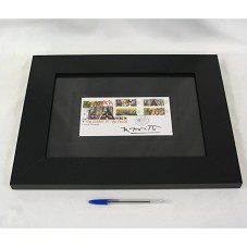 QUADRO (34X43 CM) COM MOLDURA PRETA, TAMPO DE VIDRO E PASSE-PARTOUT EM TECIDO PRETO. EMOLDURA CARTÃO (10,5X19 CM) COM PINTURA ASSINADA POR 'ROMERO BRITTO', POSSUINDO A INSCRIÇÃO '450 ANOS DA CIDADE DE SÃO PAULO / 1º DIA DE CIRCULAÇÃO', E COM CARIMBO POSTAL DOS CORREIOS. POSSUI A SÉRIE DE SELOS POSTAIS EM COMEMORAÇÃO AO ANIVERSÁRIO DE SÃO PAULO, COLADA NO CARTÃO. SÃO QUATRO TELAS QUE FORMAM A QUADRA '450 ANOS DA CIDADE DE SÃO PAULO', ASSINADAS PELO ARTISTA ROMERO BRITTO, E EXPRESSAM O CRESCIMENTO, A GRANDEZA, A IMPORTÂNCIA E A COMPOSIÇÃO DA MISCIGENADA POPULAÇÃO DA CIDADE. O CONJUNTO FOI LANÇADO PELOS CORREIOS EM JANEIRO DE 2004, COM TIRAGEM DE 4,8 MILHÕES DE UNIDADES, E COM VALOR FACIAL DE R$ 0¸74 CADA UM.