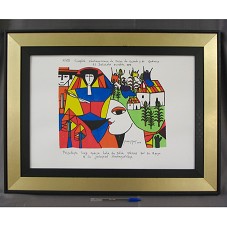 QUADRO (49X64,4 CM)COM MOLDURA EM MADEIRA PRETA, E FRISO EM LAMINADO DOURADO. EMOLDURA SERIGRAFIA (30X32 CM) EM CANSON BRANCO (34X49 CM), COMPOSIÇÃO DE VÁRIOS DESENHOS JUNTOS. PREDOMINA AS CORES VERMELHA, AZUL, VERDE E AMARELO. NA PARTE SUPERIOR, A INSCRIÇÃO 'XVIII CUMBRE IBEROAMERICANA DE JEFES DE ESTADO Y DE GOBIERNO / EL SALVADOR OCTUBRE 2008'; NA INFERIOR, 'PRESIDENTE LUIZ INÁCIO LULA DA SILVA GRACIAS POR SU APOYO A LA JUVENTUD IBEROAMERICANA'. NO CANTO INFERIOR DIREITO, ASSINATURA DO ARTISTA 'FERNANDO IJORT 2008'.