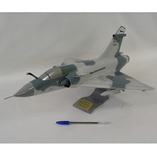 MAQUETE DO AVIÃO F-2000C 4940 MIRAGE DA FORÇA AÉREA BRASILEIRA (49X31X16 CM), PINTADO EM TONS DE CINZA. HÁ ADESIVOS COM IDENTIFICAÇÃO DO AVIÃO E INSTRUÇÕES COLADOS NA MAQUETE. POSSUI BASE-SUPORTE, ONDE HÁ PLACA METÁLICA COM A GRAVAÇÃO 'AO PRESIDENTE LULA DO AMIGO BRIG INF DURANS / BRASÍLIA, 31 DE JULHO DE 2008.