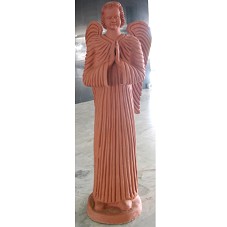 ESCULTURA (173 CM), CONFECCIONADA EM ARGILA, REPRESENTANDO UM ANJO COM AS MÃOS EM POSIÇÃO DE ORAÇÃO. PINTADA EM TOM TERRACOTA. OBJETO APRESENTA RACHADURA NOS PULSOS DAS DUAS MÃOS E NOS POLEGARES. PEÇA FAZ PARTE DE UM CONJUNTO DE QUINZE OBJETOS, QUE FORMAM UM PRESÉPIO.
