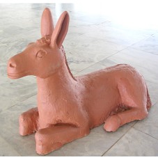 ESCULTURA (60X76X32 CM), CONFECCIONADA EM ARGILA, REPRESENTANDO UM BURRO SENTADO SOBRE AS QUATRO PATAS. PINTADA EM TOM TERRACOTA. PEÇA FAZ PARTE DE UM CONJUNTO DE QUINZE OBJETOS, QUE FORMAM UM PRESÉPIO.