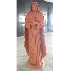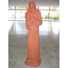 ESCULTURA (185 CM), CONFECCIONADA EM ARGILA, REPRESENTANDO UM PASTOR, VESTINDO TÚNICA, COM LENÇO NA CABEÇA, SEGURANDO UM FILHOTE DE OVELHA. PINTADA EM TOM TERRACOTA. PEÇA FAZ PARTE DE UM CONJUNTO DE QUINZE OBJETOS, QUE FORMAM UM PRESÉPIO.
