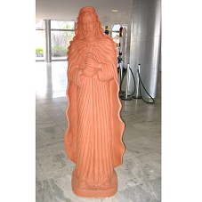 ESCULTURA (96X58X48 CM), CONFECCIONADA EM ARGILA, REPRESENTANDO MARIA AJOELHADA E COM AS MÃOS EM POSIÇÃO DE ORAÇÃO. NA PARTE POSTERIOR DA ESCULTURA, A INSCRIÇÃO 'DINHO DE ZEZINHO / TRACUNHAÉM / PE'. PINTADA EM TOM TERRACOTA. PEÇA FAZ PARTE DE UM CONJUNTO DE QUINZE OBJETOS, QUE FORMAM UM PRESÉPIO.
