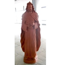 ESCULTURA (178 CM), CONFECCIONADA EM ARGILA, REPRESENTANDO UM DOS REIS MAGOS CARREGANDO O POTE COM TAMPA TRABALHADA. PINTADA EM TOM TERRACOTA. NA PARTE POSTERIOR DA ESCULTURA, A INSCRIÇÃO 'DINHO DE ZEZINHO / TRACUNHAÉM / PE'. PEÇA FAZ PARTE DE UM CONJUNTO DE QUINZE OBJETOS, QUE FORMAM UM PRESÉPIO.