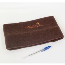 GOLA DE LÃ (28X14 CM), CONFECCIONADO EM LÃ MARROM, PODENDO SER USADA ENROLADA NAS MÃOS. NA PARTE FRONTAL, BORDADO COM A INSCRIÇÃO 'HOTELES AUSTRAUS PATAGONIA' E LOGOMARCA DA INSTITUIÇÃO.