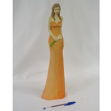 ESCULTURA (43 CM) ESCULPIDA EM MADEIRA, REPRESENTANDO UMA MULHER COM UM LONGO VESTIDO LARANJA, SEGURANDO UMA FLOR COPO DE LEITE. NA BASE DA ESCULTURA, A GRAVAÇÃO 'INGRID THALER / TREZE TILIAS / SANTA CATARINA / BRASIL 2008'. ACOMPANHA FOLDER COM BREVE BIOGRAFIA SOBRE A ARTISTA.
