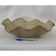 FRUTEIRA (10,5X37X37 CM) CONFECCIONADA EM BAGAÇO DE CANA E PAPEL MACHÊ, COM BORDAS ONDULADAS E TRABALHADAS EM PALHA TRANÇADA. OBJETO EM TONS DE MARROM CLARO. ACOMPANHA CARTÃO COM BREVE DESCRIÇÃO DA PEÇA E FOLDER DO 'LINEART'.