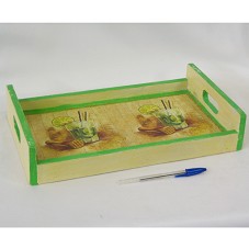 BANDEJA (7X37X22 CM) CONFECCIONADA EM MADEIRA. PINTADA DE BEGE, COM DETALHES EM VERDE E APLICAÇÃO DE DECOUPAGE. NO FUNDO, A INSCRIÇÃO '34ª FESTA DO FAZENDEIRO / PREFEITURA MUNICIPAL DE LAGAMAR / ADM 2005 A 2008'.
