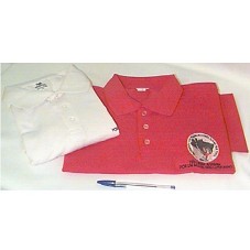 DUAS CAMISAS GOLA PÓLO (TAM G). UMA NA COR VERMELHA E OUTRA NA COR BRANCA, AMBAS DE MANGA CURTA, COM TRÊS BOTÕES PRÓXIMOS À GOLA. NO LADO SUPERIOR ESQUERDO, O EMBLEMA DO MST BORDADO 'MOVIMENTO DOS TRABALHADORES RURAIS SEM TERRA - BRASIL', E A INSCRIÇÃO 'REFORMA AGRÁRIA / POR UM BRASIL SEM LATIFÚNDIO'.