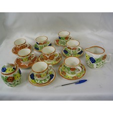 CONJUNTO PARA CAFÉ COMPOSTO POR: OITO XÍCARAS ACOMPANHADAS DE PIRES; UMA LEITEIRA E UMA AÇUCAREIRA. CONFECCIONADO EM PORCELANA COM MOTIVOS FLORAIS. ACONDICIONADO EM CAIXA DE PAPELÃO (24X23X21 CM).