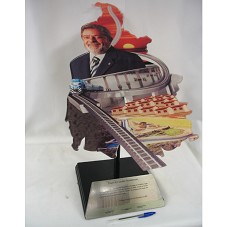 TÍTULO DE CIDADÃO TOCANTINENSE. PLACA (10X24 CM) EM AÇO ESCOVADO, COM A INSCRIÇÃO 'TÍTULO DE CIDADÃO TOCANTINENSE / A ASSEMBLÉIA LEGISLATIVA DO ESTADO DO TOCANTINS, TENDO EM VISTA O DISPOSTO NA LEI Nº 1.890, DE 2 DE JANEIRO DE 2008, CONCEDE AO SENHOR LUIZ INÁCIO LULA DA SILVA, O TÍTULO DE CIDADÃO TOCANTINENSE EM VIRTUDE DOS RELEVANTES SERVIÇOS PRESTADOS A ESTE ESTADO / ...09 DE DEZEMBRO DE 2008'. PLACA FIXADA NA BASE DE METAL, QUE SUPORTA OUTRA PLACA DE ACRÍLICO, NO FORMATO DO MAPA DE TOCANTINS, COM FOTOGRAFIAS DO PRESIDENTE LULA, DO TRANSPORTE FERROVIÁRIO E DA CIDADE.